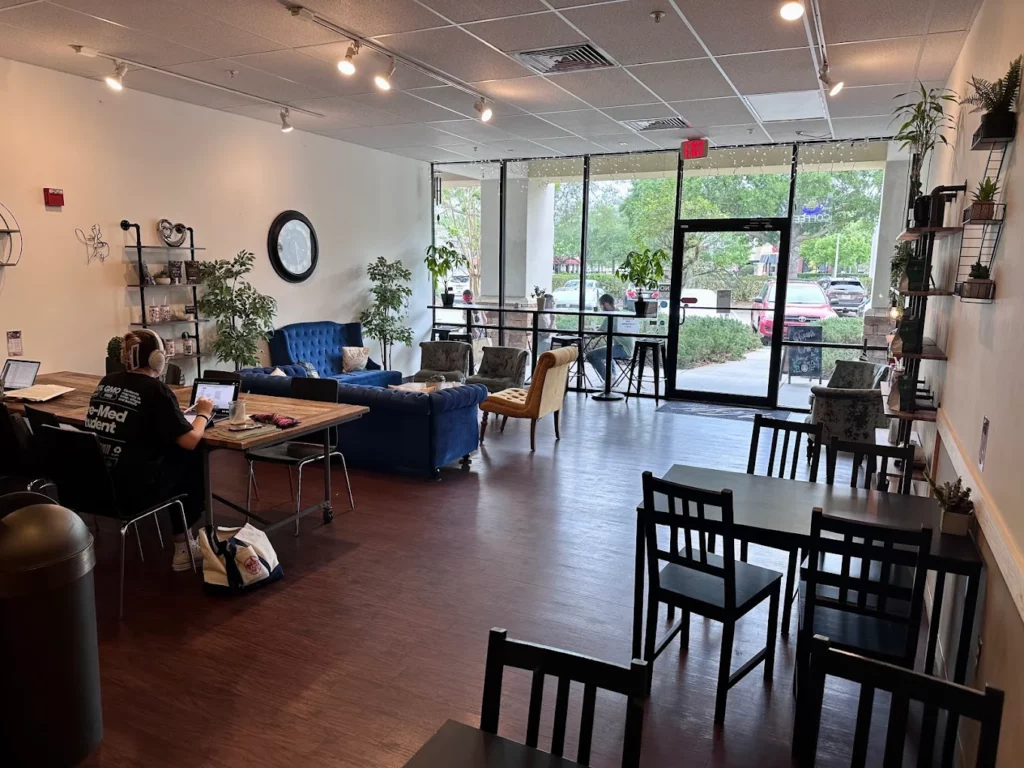 - Spacious Work Zones: It offers plenty of cozy seating and a “no-fuss” environment. It is one of the few places in East Orlando where you are guaranteed a professional work vibe.