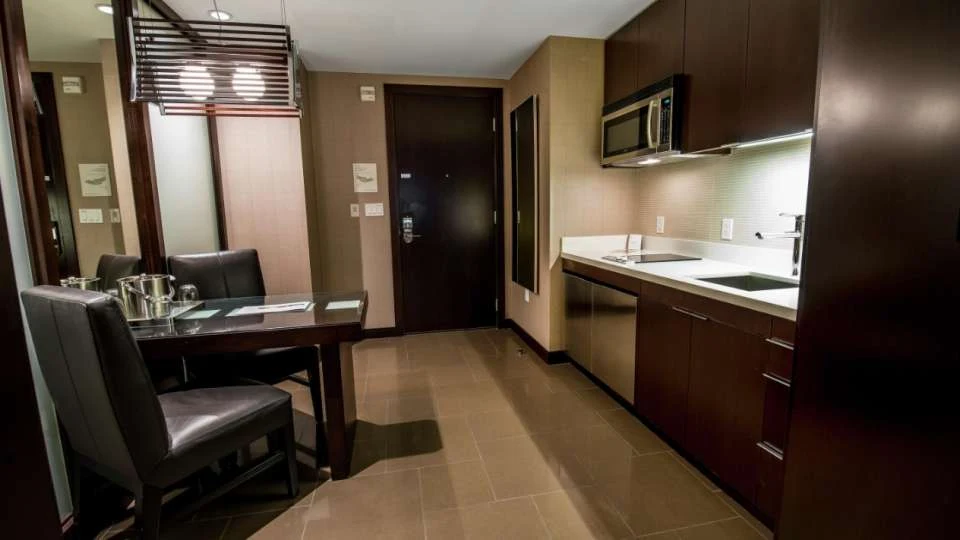 All-Suite Living: Every room features a kitchenette and a living area, making it ideal for longer stays where you need a “home office” feel.